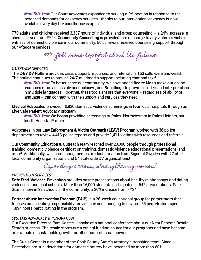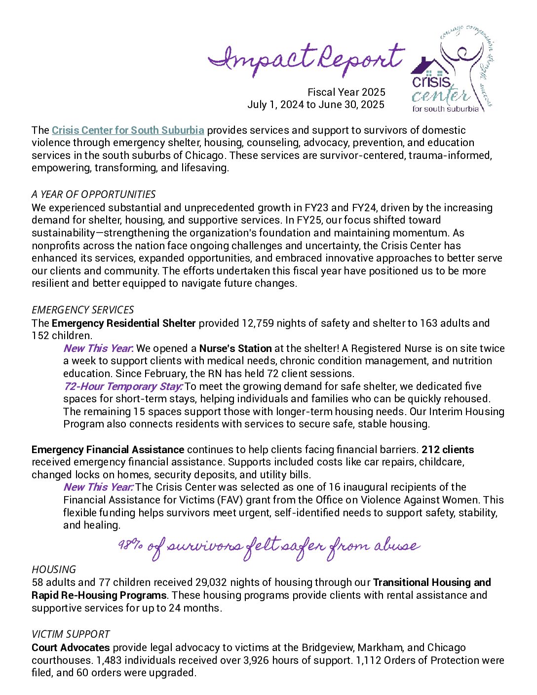 The Crisis Center for South Suburbia is a forward-thinking organization committed to impactful innovations that empower and support our community.